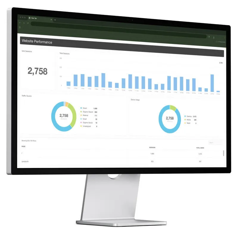 At Indata, reporting plays a critical role in how we measure performance, communicate results, and keep clients informed. That is why we use a proprietary data dashboard to support a more streamlined, accurate, and professional reporting experience across the digital marketing services we manage.